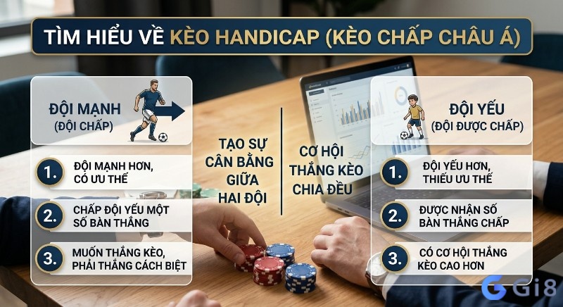 Kèo handicap là gì không chỉ là một thuật ngữ cá cược, đó là cả một chiến lược. Nếu anh em đã từng thấy một đội bóng cửa dưới ‘vùng vẫy’ để rồi bất ngờ ‘ăn’ kèo chấp, thì đó chính là lúc loại hình này thể hiện sức mạnh của nó. gi8 này sẽ không vòng vo, mà đi thẳng vào bản chất kèo Handicap là gì, cách đọc từng tỷ lệ chấp Châu Á phổ biến, và những bí kíp ‘thực chiến’ từ chuyên gia để anh em tăng cơ hội thắng lớn. Nắm vững nó, sẽ tự tin hơn khi ‘xuống tiền’, và quan trọng nhất, giảm thiểu rủi ro thua lỗ không đáng có.